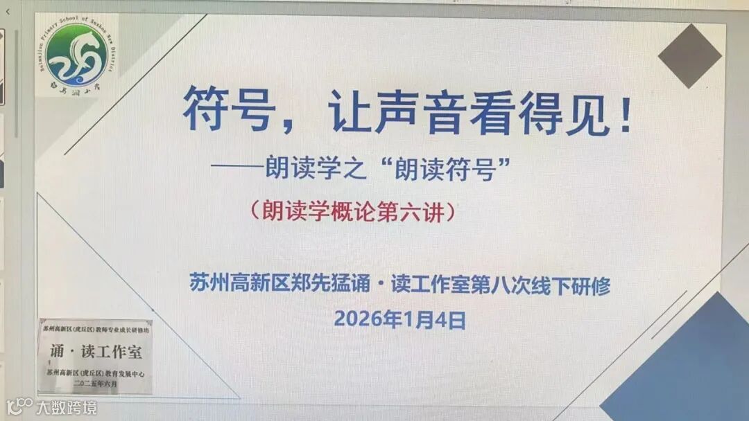冬日轻寒,声暖如诗。2026年1月4日,苏州高新区郑先猛诵·读工作室第八次研修活动,在朗读声中徐徐展开。此次活动以“朗读符号”为舟,载一室师者,漫溯于声音与文本交织的河流,探寻那可见可感、可触可诵的教学之美。