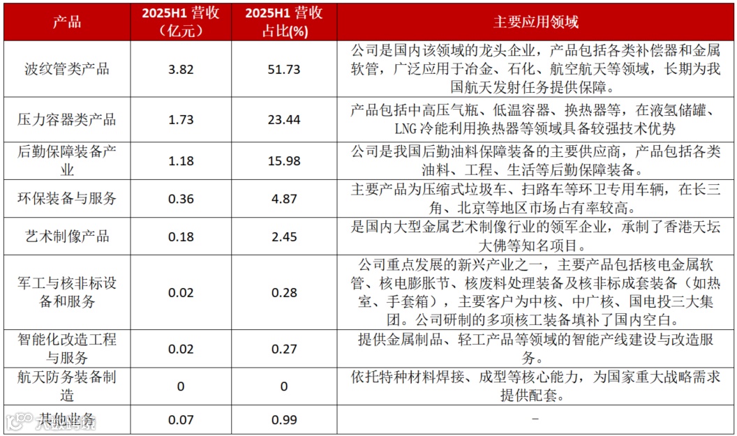 核心产品:包括运载火箭燃料加注系统(如液氢运输槽车、输送管阀系统)、箭上管路系统(如金属软管)和贮箱关键部件(如隧道管组件)。
