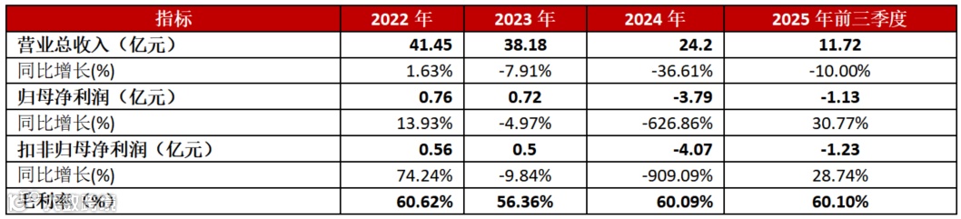 公司营收自2022年起持续走低,2024年同比大幅下滑36.61%,2025年前三季度同比下滑10%。核心原因有三: