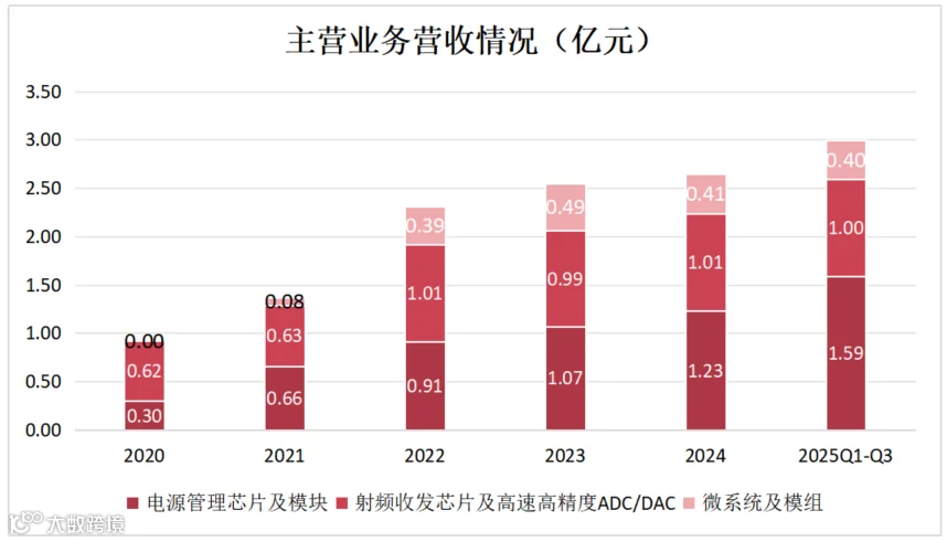 是公司目前收入占比最高的业务,2025年前三季度收入贡献1.59亿元,占总收入约52.6%。该产品线稳态毛利率可达80%以上。该业务的增长主要受益于在星载和弹载领域的广泛应用和需求放量。 -