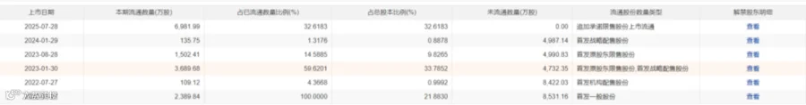 限售股解禁:公司于2025年7月28日有部分首次公开发行限售股上市流通,合计69,819,904股。