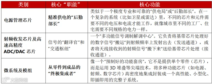 具体分产品来看,主要分为三大类:电源管理芯片、射频收发芯片及高速高精度ADC/DAC芯片、微系统及模组。