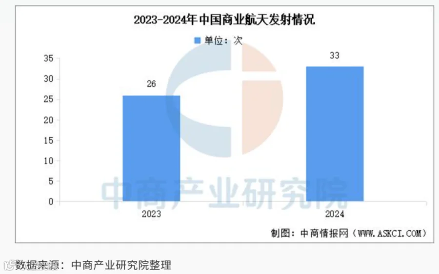 • 2024年商业航天发射次数达到33次,比2023年多; -