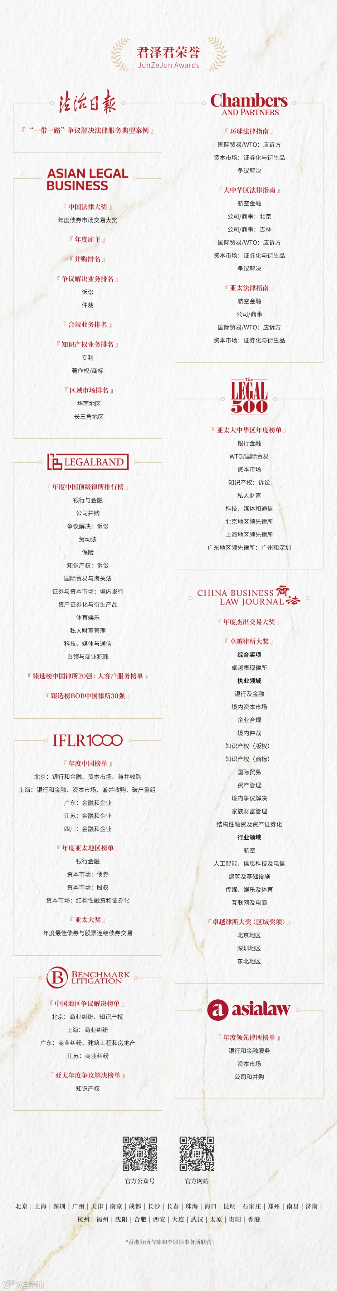 君泽君律师始终坚持良好的职业规范,注重职业道德,坚持尽职高效的工作原则,追求每项服务的尽善尽美,运用自己的专业技能和经验为客户的每项具体法律事务,选派最适当的人员处理其最精通的问题,最大限度地保障客户的利益。未来君泽君将继续发挥业务优势,一如既往地为客户提供优质、便捷和高效的法律服务。