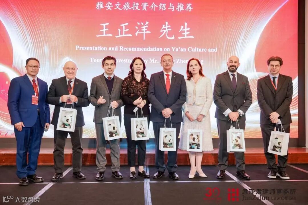 夕食会の最後に、雅安分会会長を務める王正洋弁護士は、故郷である雅安市の発展に常に思いを馳せ、雅安を最も象徴するパンダのぬいぐるみを列席された各国総領事及びご夫人、外国人の友人代表の方々に贈呈しました。そして、総領事ご夫婦、外国人の友人代表ならびにご列席の皆様に、雅安への訪問を招請するとともに、雅安の風土と文化を感じていただき、同地への投資・発展を通じて雅安の歴史的な発展機会を共有していただきたいとの歓迎の意を表しました。