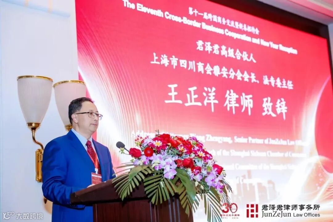 君澤君法律事務所のシニアパートナーであり、上海市四川商会雅安分会会長、同商会法律専門委員会主任を務める王正洋弁護士は、本交流会の発起人として、長年にわたり君澤君および商会に対してご支援とご関心を賜りました各界の関係者の皆様に、心より感謝の意を表しました。王弁護士は、君澤君が中国における最初に設立されたパートナー制法律事務所の一つであり、本年創設30周年を迎えることなどについても紹介しました。