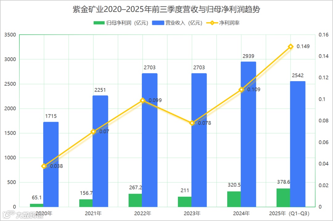 铜业务:2025年前三季度狂产83万吨铜(同比+5%),继续扛起公司营收大旗。说白了,紫金今天的“体面”,一半是铜给的。