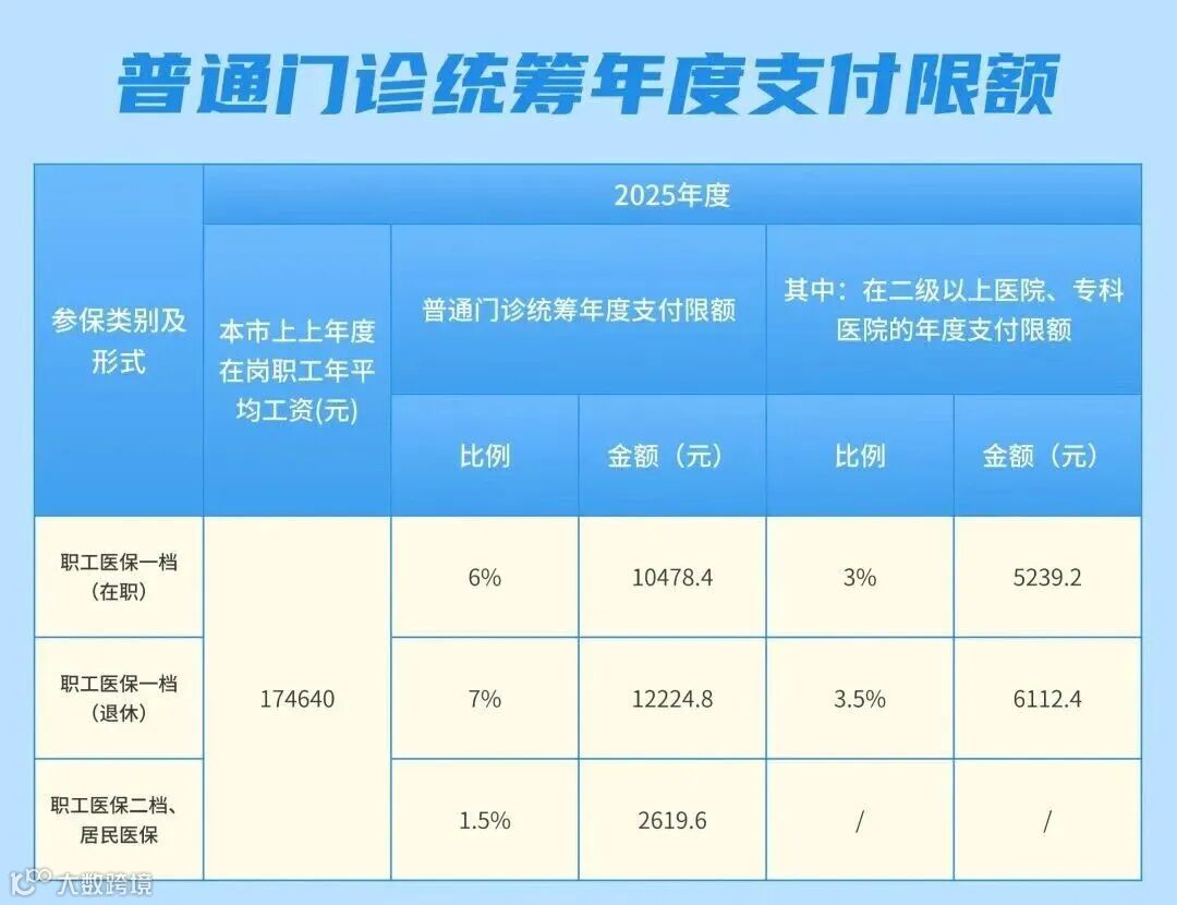 ● 职工一档医保普通门诊年度支付限额:约为10478元;