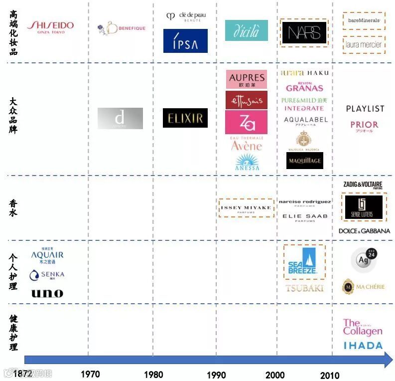 图片来源:国泰君安证券研究(橙色边框为收购品牌,其余为自孵化品牌;香水类主要为授权经营)