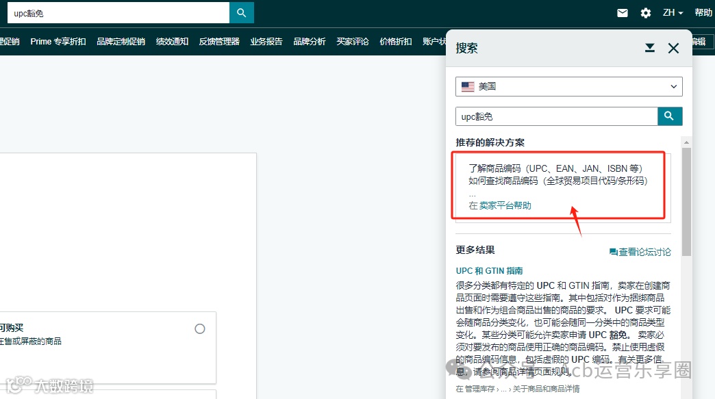 如果卖家已经有了品牌备案,可以进入亚马逊店铺后台搜索“UPC豁免”。