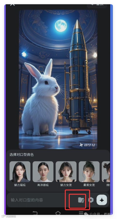 - 打开即梦APP,导入猫咪图片,选择相册中的音频完成对口型生成。
