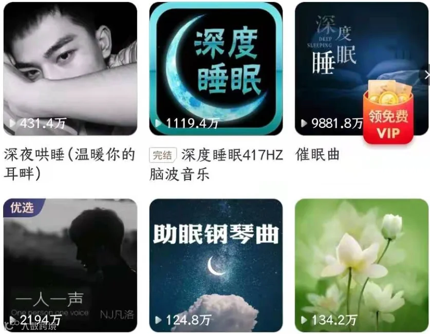 一位内容创作者坦言,相同内容贴上“助眠”标签后,播放量从寥寥无几跃升至数百万,远超传统有声书。