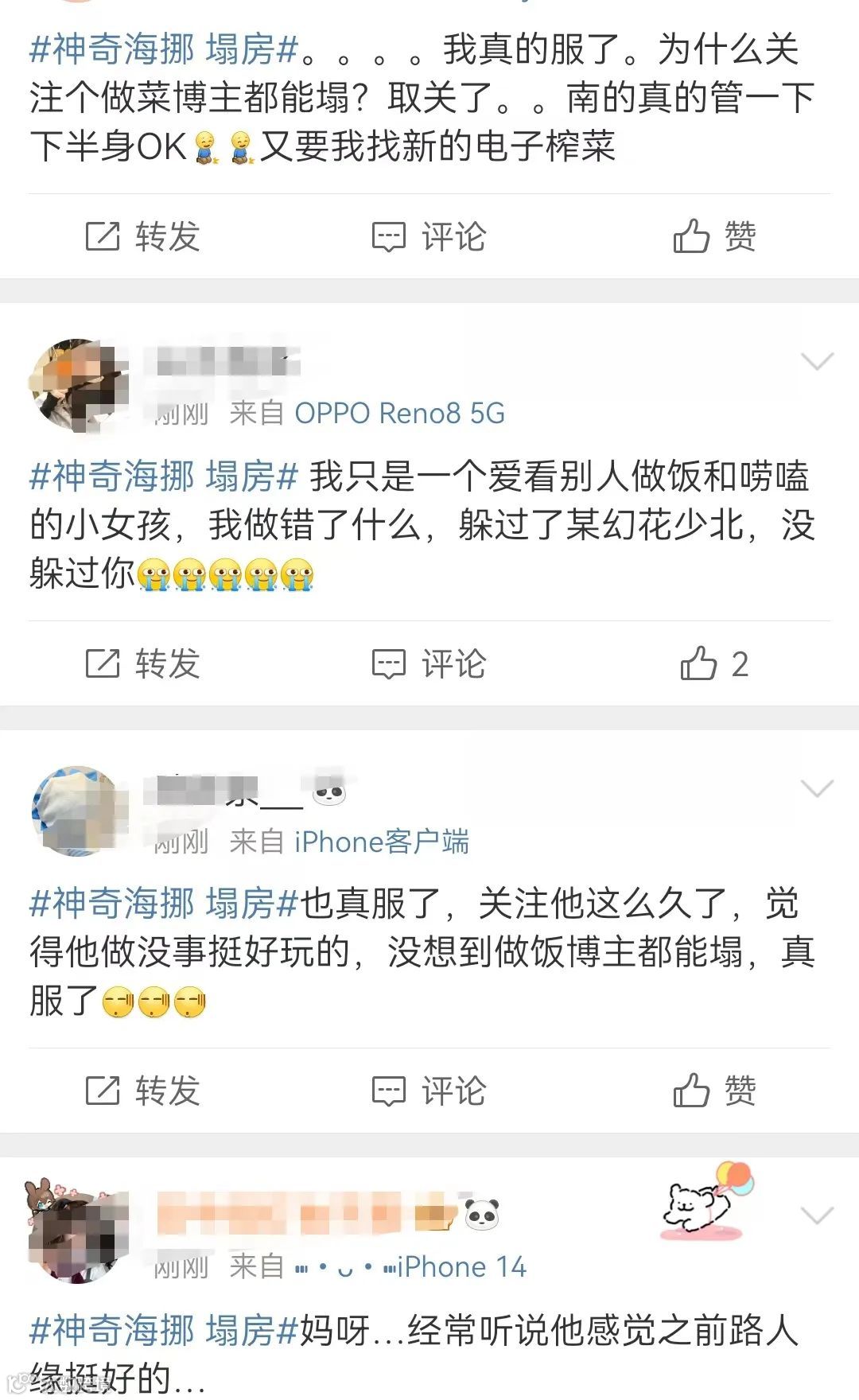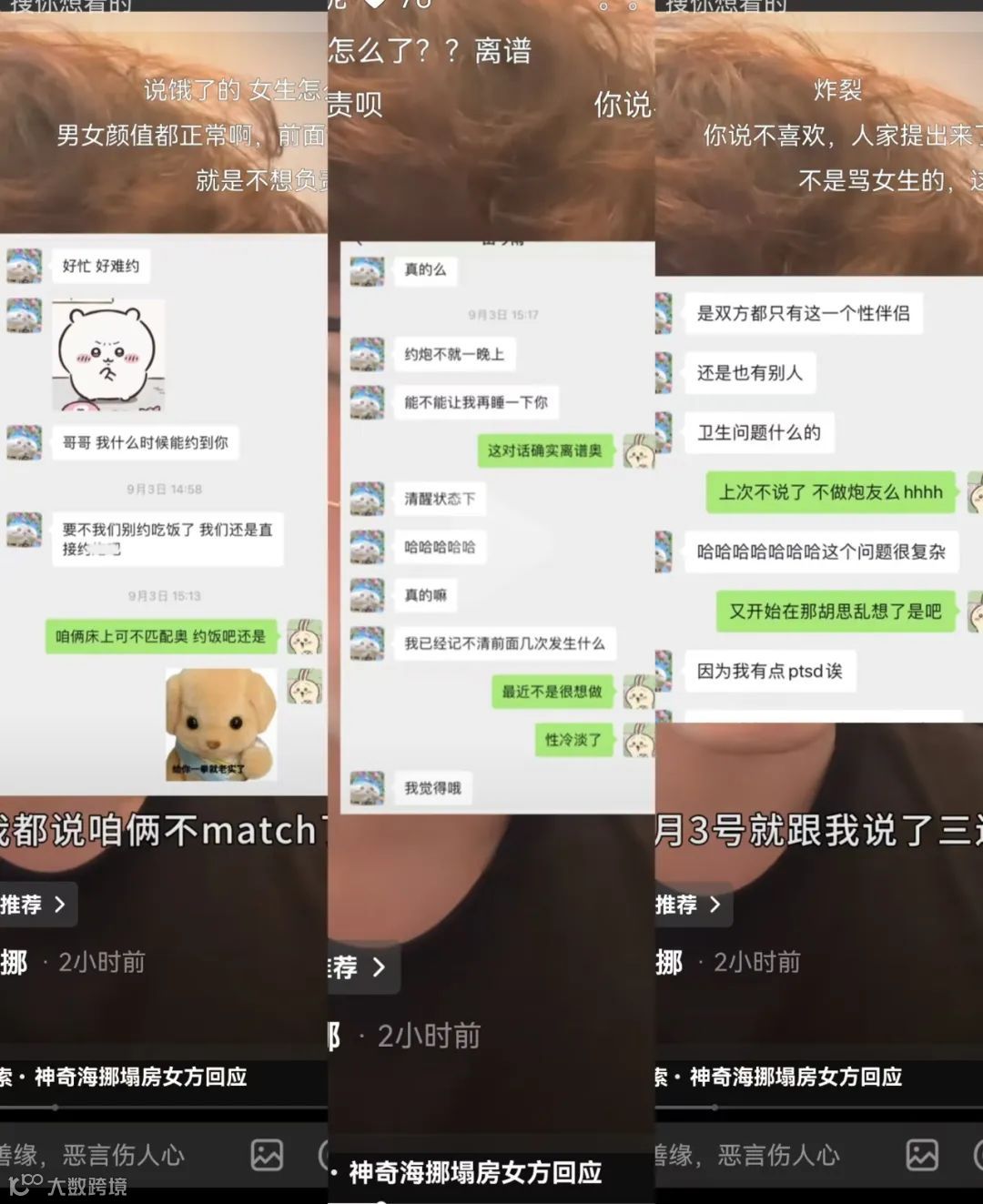 目前,两人分别作出回应后,没有再透露更多的内容。很多网友表示,没有想到自己追的做菜博主也能塌房,真的太魔幻了。