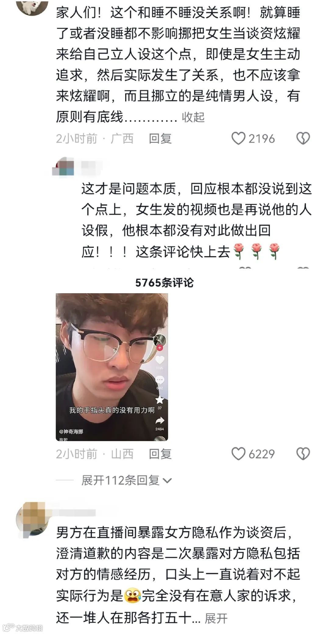 不过,部分网友觉得神奇海挪确实在直播间乱说了,并且自己立的是纯情男人设,但是却实际发生了关系,他的道歉回应也没有说到点上。