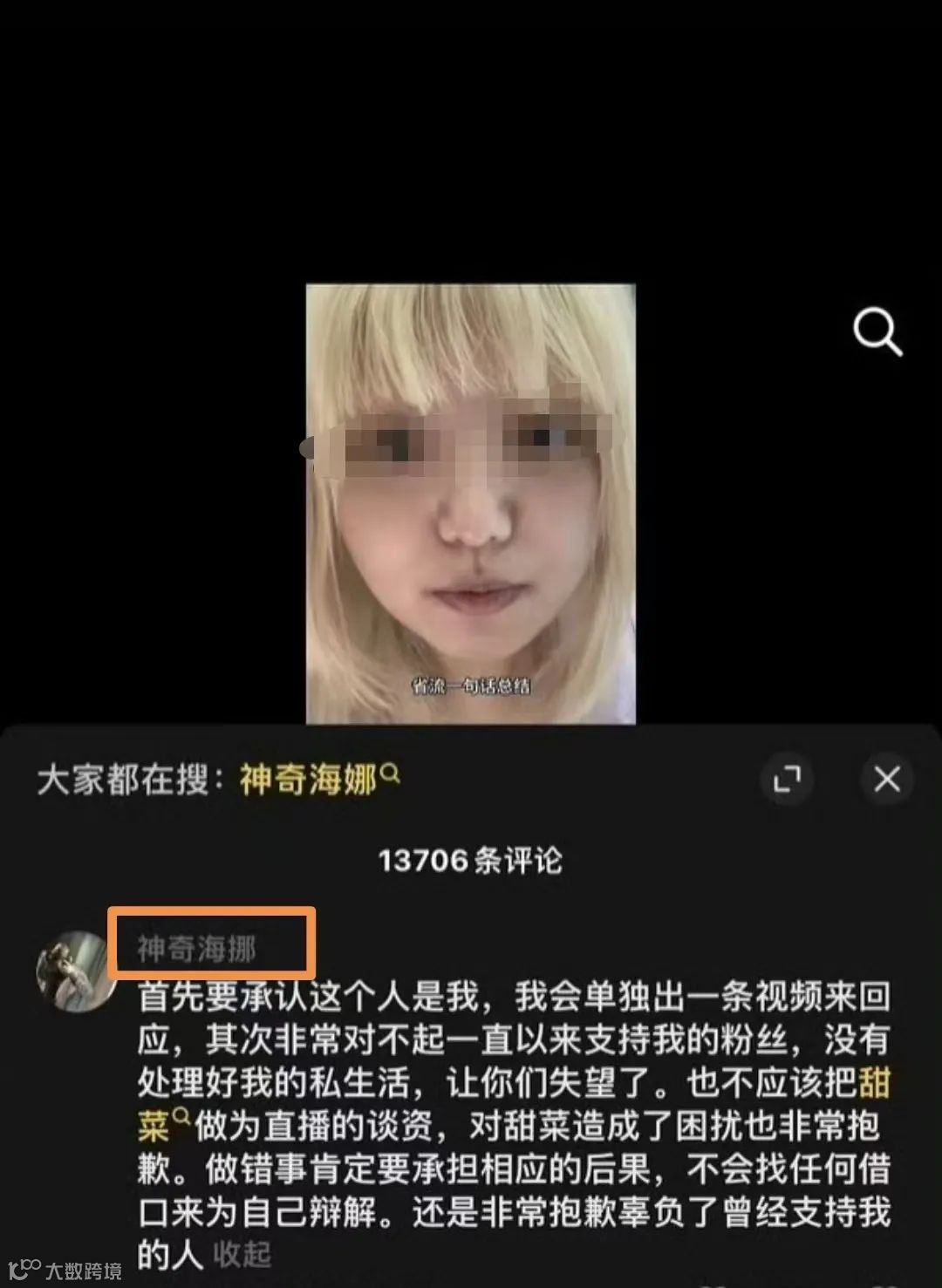 随后,神奇海挪也在评论区做出了解释,承认甜菜火烧视频中所说的网红是自己,并对粉丝和甜菜火烧道歉。