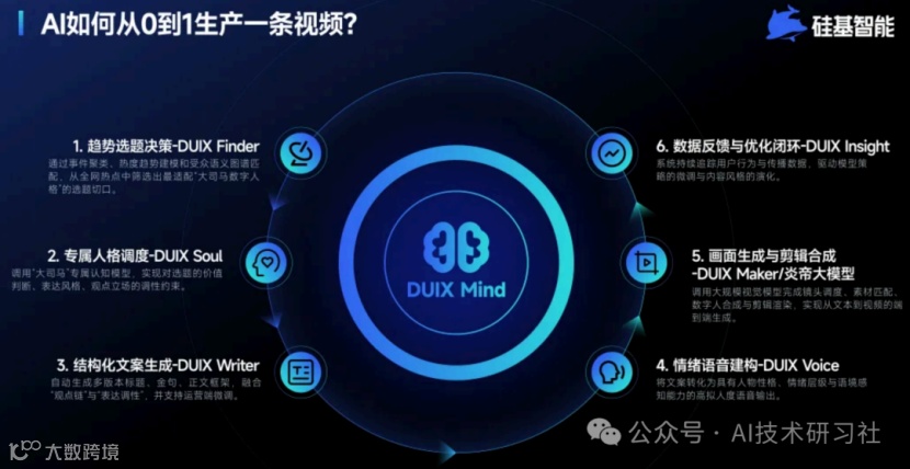 其核心技术支撑是硅基智能自研的DUIX Mind多智能体系统,搭配“炎帝”百亿级大模型。该架构具备复杂叙事理解与组织能力,并可根据用户画像与时政语境动态调整语调、情绪与价值取向,实现“情感与信念对齐”。