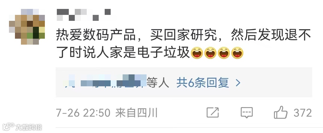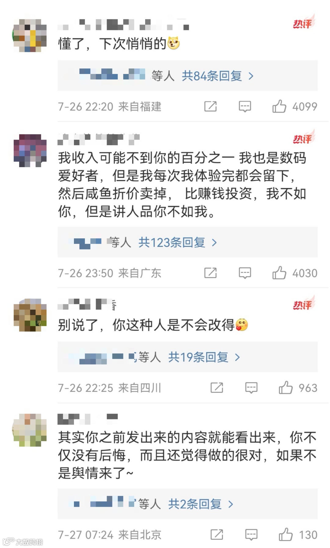 在这位产品经理发完微博后,许多网友认为她是碰瓷党、白嫖党,还有网友认为,她一边说热爱电子产品要买回家研究,发现退不了了就说这些产品是电子垃圾,太双标了。