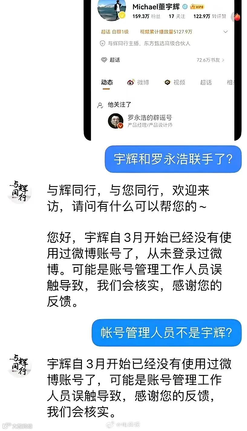 对此,与辉同行官方客服回应表示,“宇辉自3月开始已经没有使用过微博账号了,从未登录过微博。可能是账号管理工作人员误触导致,我们会核实,感谢您的反馈。”