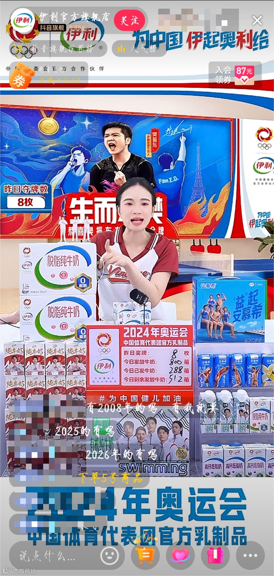 伊利和安踏也都纷纷抓住机会开启奥运直播,直播间内也是热闹非凡。