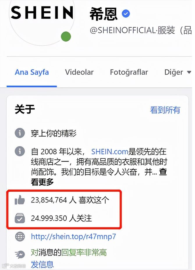 在这一策略的推动下,SHEIN在各大社交媒体平台上积累了庞大的粉丝群体。以Instagram为例,早在21年,SHEIN官方账号已经吸引了超过2000万的关注者。而在Facebook上,SHEIN也拥有近2500万的忠实粉丝。