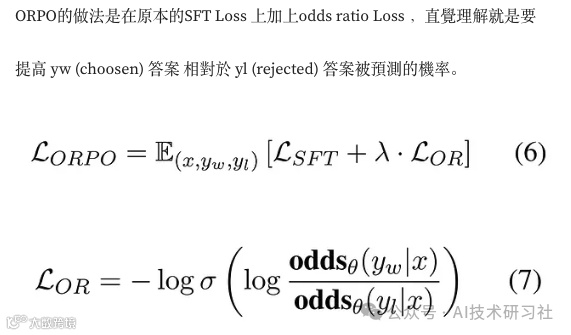 (3) 单体偏好优化(Monolithic Preference Optimization, ORPO)
