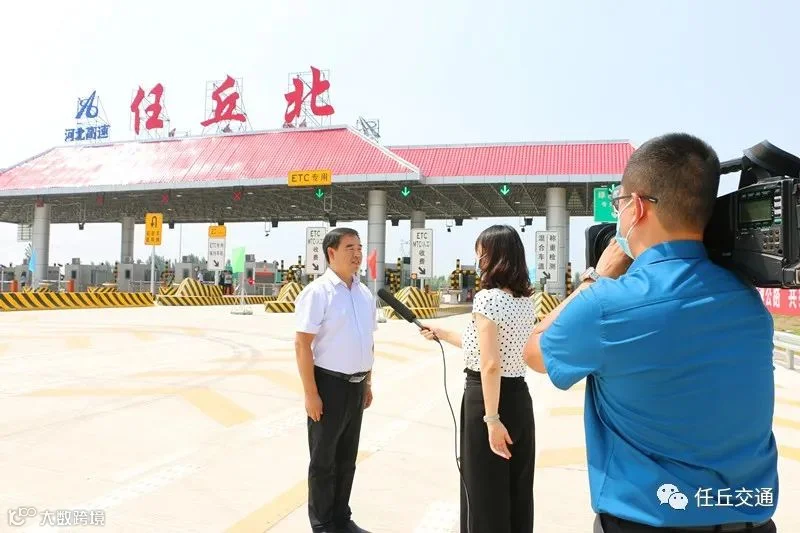 交通局长庞顺江就大广高速公路任丘北互通相关情况接受电视台采访。