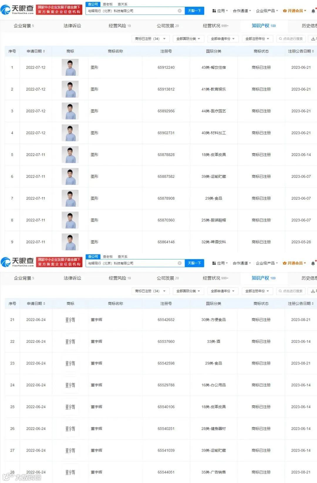 与辉同行已拥有董宇辉商标 图源:天眼查