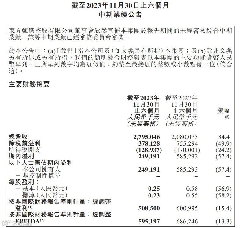 图源:东方甄选财报