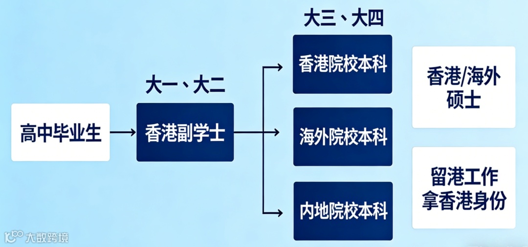 这几年,香港的副学士凭借着“2+2”升学路径(副学士2年+本科2年),被越来越多的家庭列入“plan B”。尤其对于高考成绩在本科线上下浮动的同学来说,副学士更是一个弯道超车、逆袭名校的好机会!