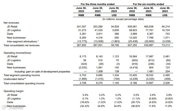 京东财报数据 图源:京东公告