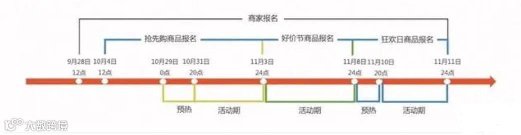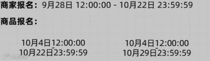 商家报名已经从9月28日中午12点开启,10月22日24时结束;商品报名不同,阶段也有不同,最早开启时间在10月4日中午12点。