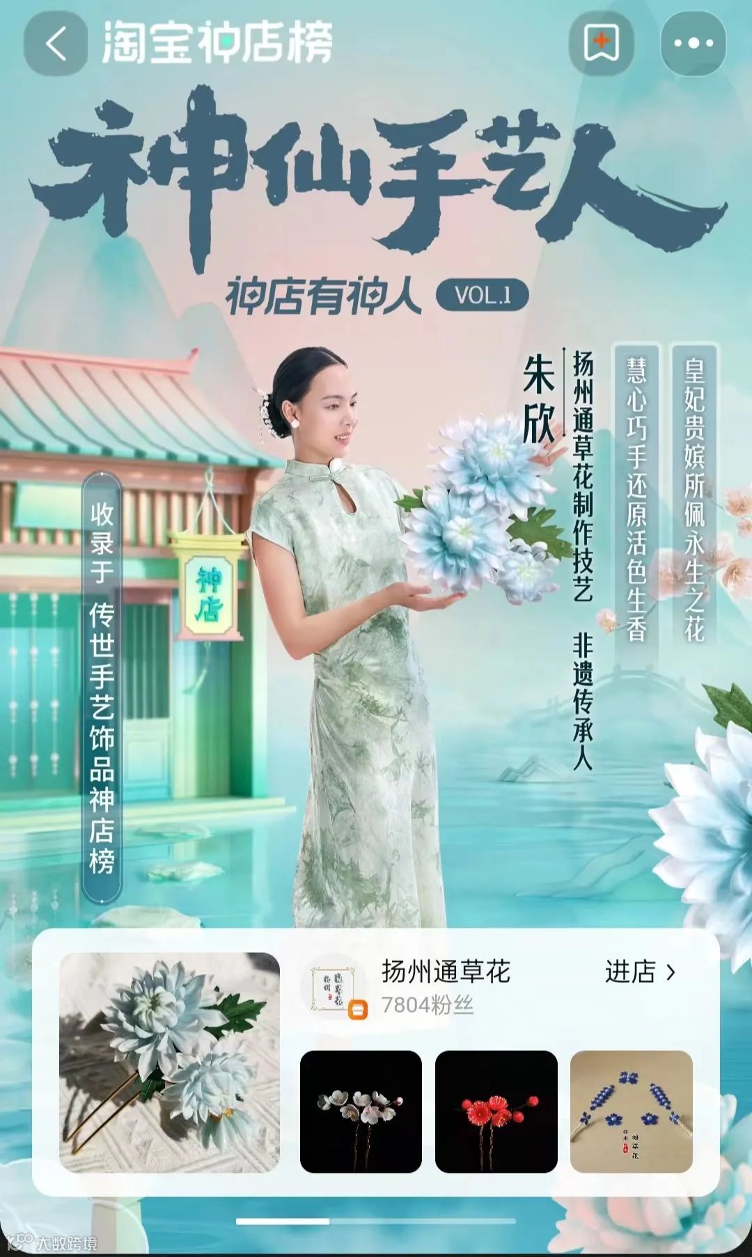 淘宝神店榜自今年9月启动“神店有神人”的第一期IP营销,以非遗手艺人作为赛道,挖掘出一批有神仙手艺的非遗传承人的宝藏店铺,让非遗商品和传世手工艺品快速撬动年轻圈层,为手艺人们探寻破圈之路。