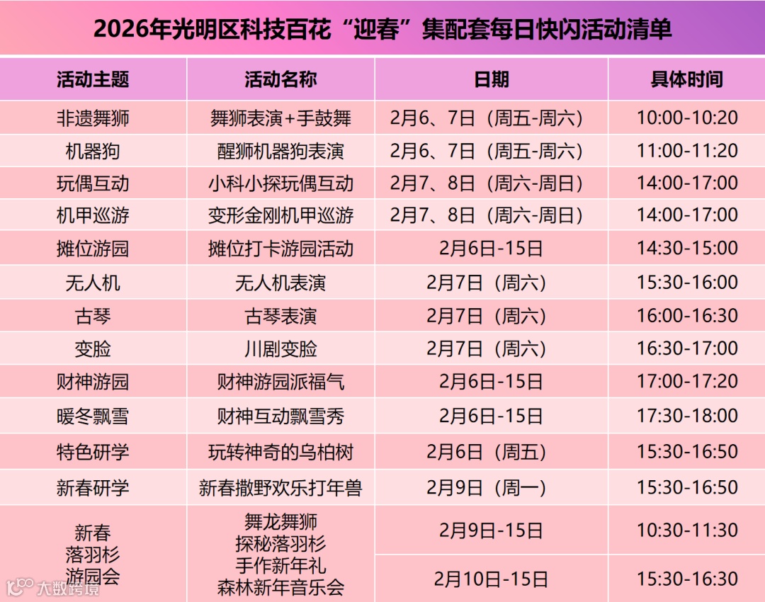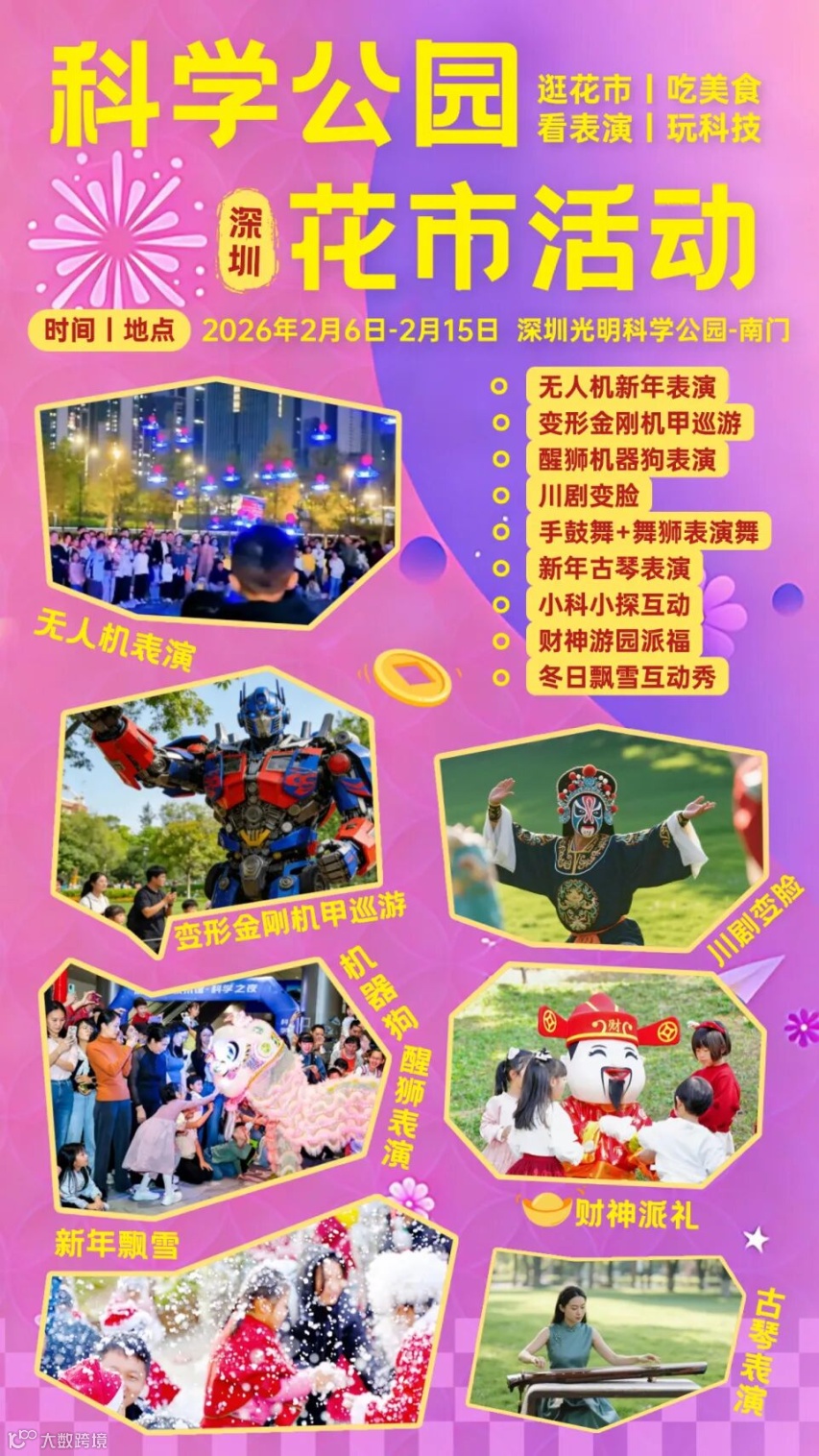 五大展区同步开放,10+场演出轮番上演,无人机秀点亮夜空,机器狗醒狮萌趣贺岁,机甲巡游未来感十足,再邂逅一场川剧变脸......在这里,科技与民俗热烈相拥,打造属于深圳的新春新回忆!