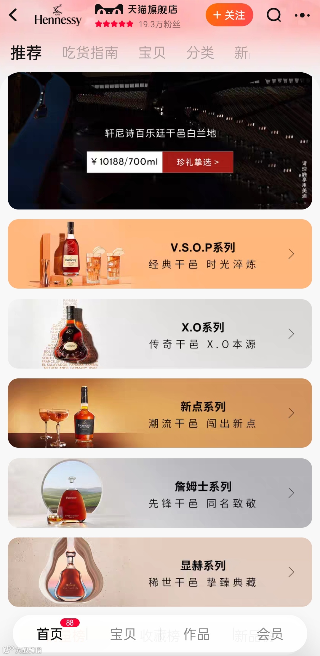 酩悦轩尼诗希望打爆明星产品,通过万相台无界版多场景投放,使⽤关键词推⼴精准投放品牌词&品类词,精准⼈群推⼴宝藏场景功能放⼤产品在⾸⻚焦点位的曝光,拉新快&会员快针对新客及店铺会员粉丝进⾏分层投放,⽬前整体效果稳定。