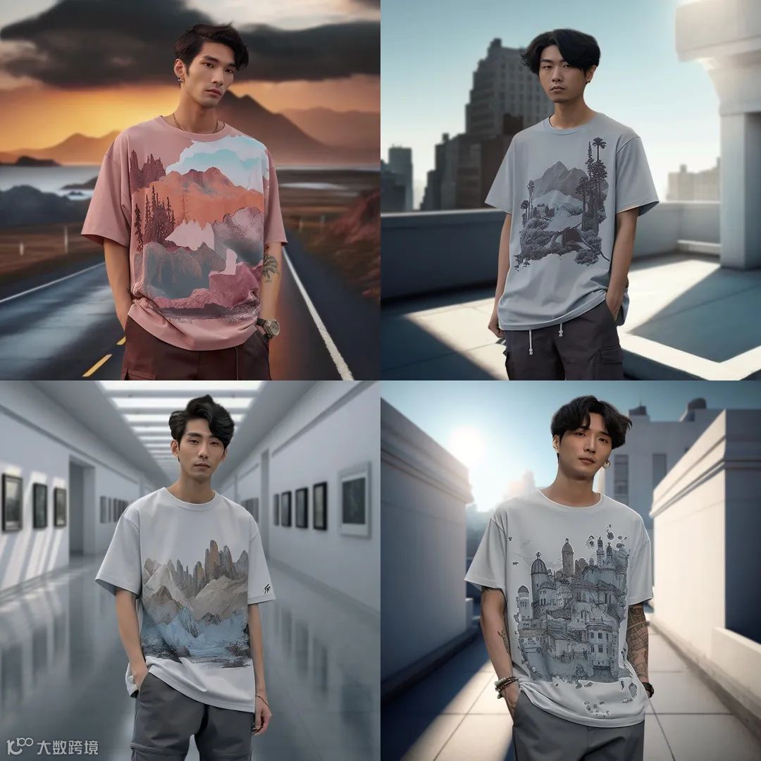商家可以首先通过前期的市场流行性研究,锁定产品核心概念。例如商家打算针对时下流行的街头工装风,在夏季推出相应的简约T恤,就只需要在AI概念工坊内输入对应指令,就能实现智能快速生图。