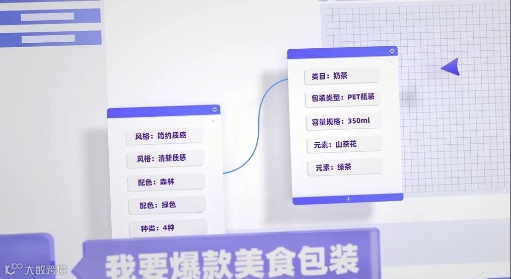 这些能力也不局限在服装品类。以食品包装设计为例,商家仅需要在AI概念工坊输入类目、包装类型、包装大小、图案、风格等关键词,就可以快速生产多种包装图。