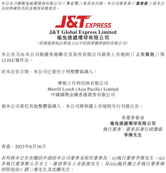 (截自极兔公告)