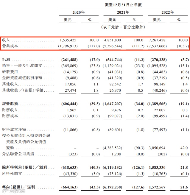 招股书显示,2020年至2022年,极兔的毛损分别达到2.61亿美元、5.45亿美元、2.7亿美元。三年时间里,极兔的经营亏损总额更是达到36亿美元。