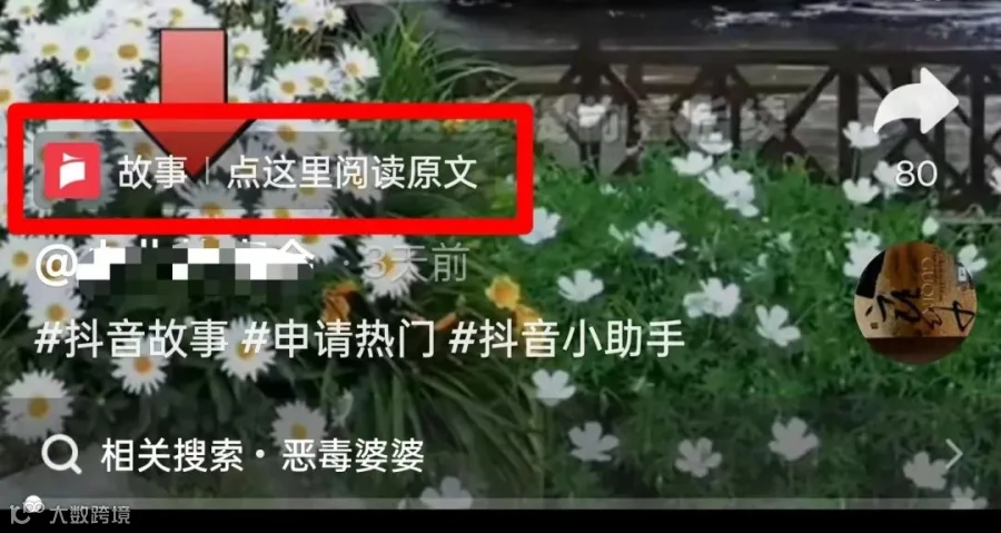 近日,抖音开始内测“抖音故事”功能。该功能可以让达人或MCN机构在发布的网文推广视频中挂载链接标签,用户点击后即可直接进入阅读页面。