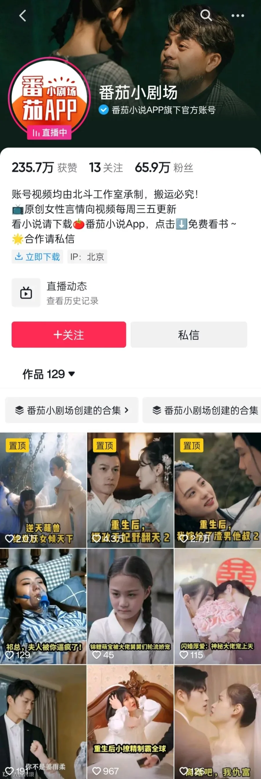 2020年8月28日,一个名为“番茄小剧场”的抖音官方账号发布了它的第一个短视频,为即将上线的改编自番茄小说IP的短剧打广告。短剧持续更新的过程中,实现了番茄小说和抖音的互相引流。