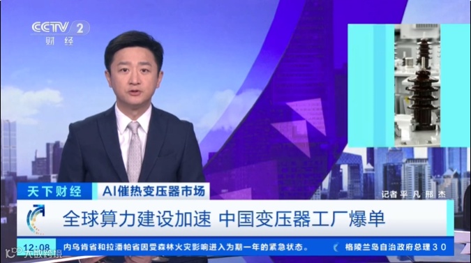 1月31日,央企财经频道《天下财经》栏目报道了《AI催热变压器市场 | 全球算力建设加速 中国变压器工厂爆单》。