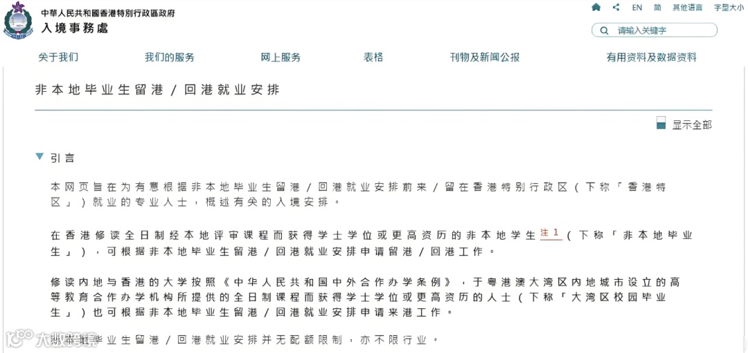 1️⃣ 搜索“网上申请非本地毕业生留港/回港就业安排”,进入官网;