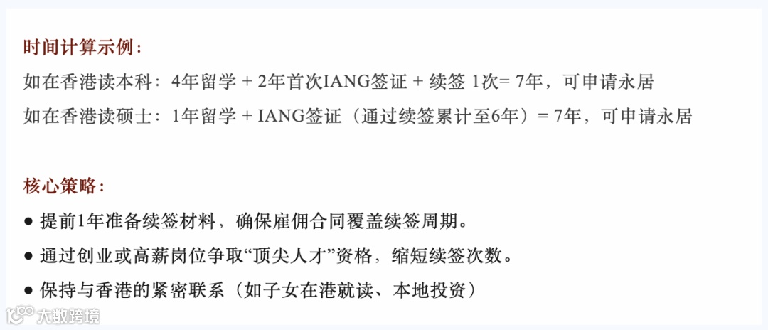 (IANG转永居计算方式 注:在港留学时间也计入)