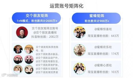 其一,部分MCN在早期起量阶段就将重点放在直播账号的矩阵化打造上,例如交个朋友、东方甄选。