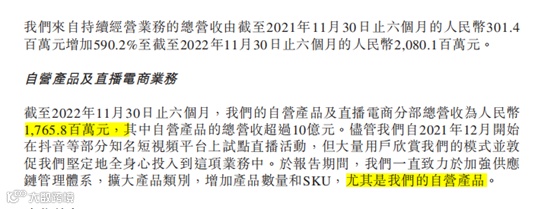财报显示,2022年6月至11月,新东方在线GMV达到48亿元,其中东方甄选所代表的的自营产品及直播电商分部总营收为17.658亿元。
