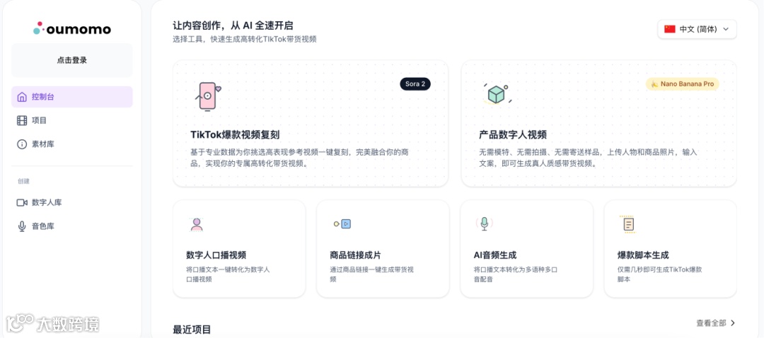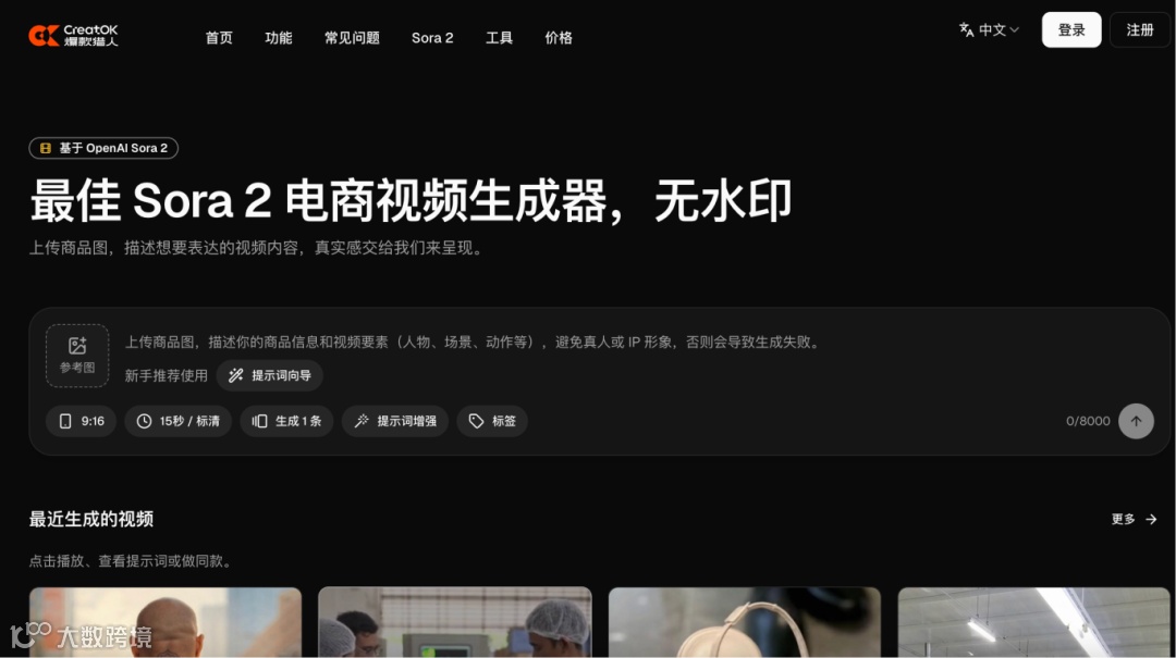 它支持爆款复刻、商品图转视频以及AI数字人生成,视频最长可达25秒,并且无水印、无需邀请码。