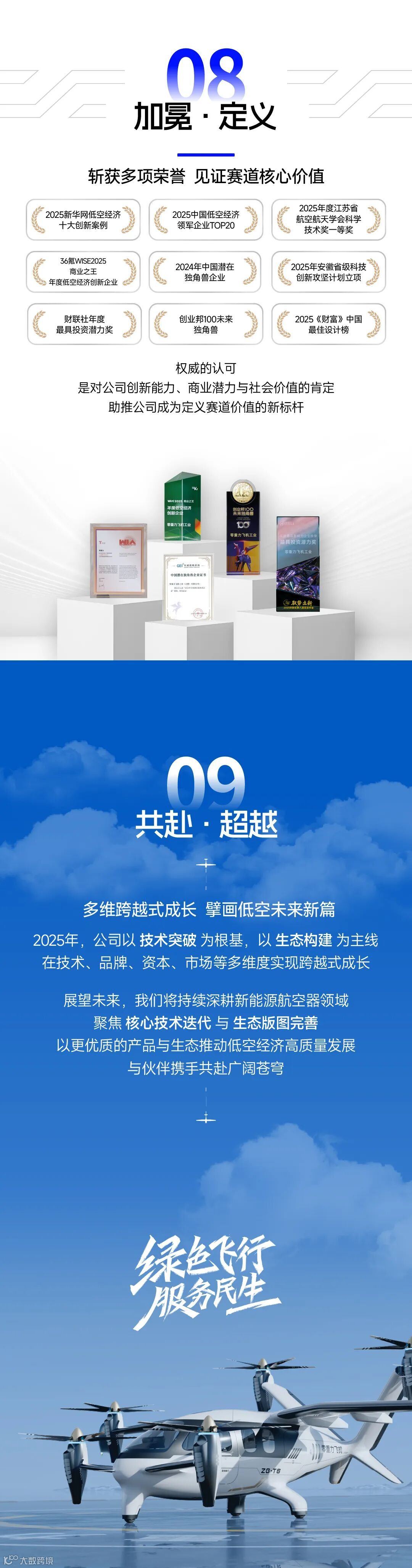 公司秉持“未来、绿色、创新”的发展理念,以“构建地球上第三种交通生态”为愿景,以“绿色飞行、服务民生”为使命,持续推进航空领域的“绿色革命”,助力我国综合立体交通体系建设。