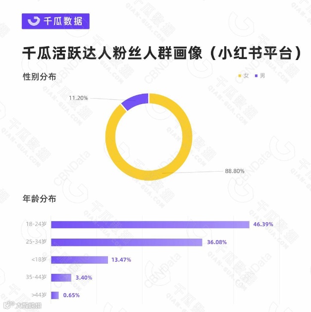 千瓜数据显示,小红书的活跃用户年龄集中在18-34岁,以女性用户为主,占比88.8%。一个平台的基调往往由占比最高的用户群体决定,而年轻女性占七成的小红书,其内容的调性就更趋于一致了。这样也能让新用户更有认同感和归属感,从而构成一种良性循环。