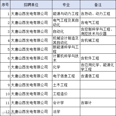 能源动力类、电气类、自动化类、机械类等专业,具体详见以下招聘岗位表。