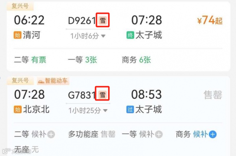 近日,不少旅客发现在铁路12306购票时,部分车次的后面出现了“雪”字标记,这难道是“赏雪”列车?